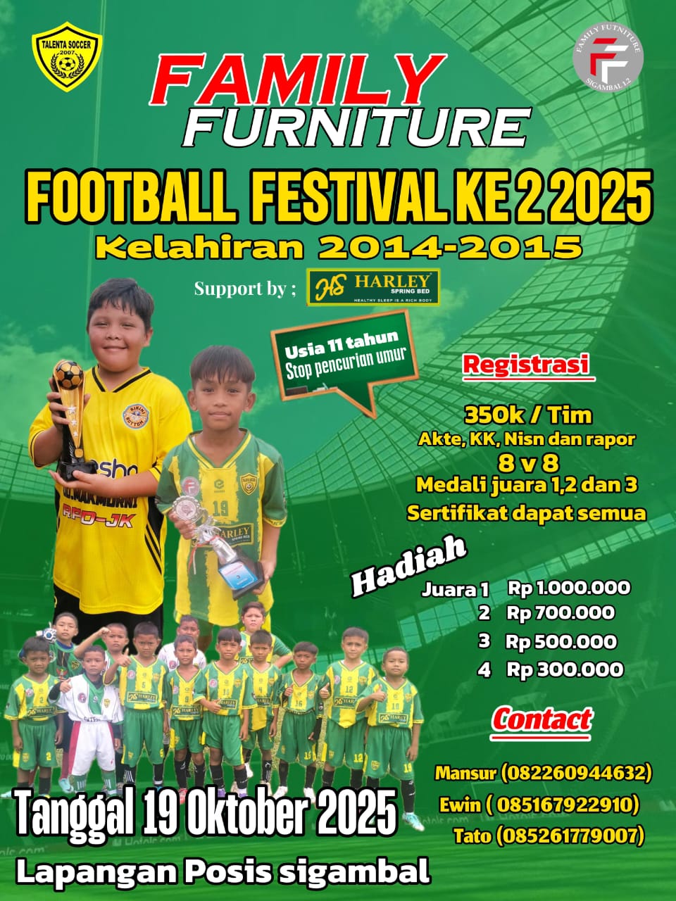 Pembinaan Pesepak Bola Usia, Talenta Soccer Gelar Even Family Furniture  U -11