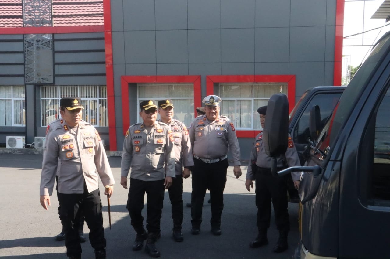 Selanjutnya, kendaraan roda empat seperti mobil patroli dan mobil operasional lainnya turut dicek. Pemeriksaan meliputi kondisi ban, oli, aki, lampu rotator, alat komunikasi, serta perlengkapan darurat seperti kotak P3K dan APAR (alat pemadam api ringan). Mobil yang membawa perlengkapan pengamanan massa juga dicek untuk memastikan kelengkapan barang dalam kondisi baik.