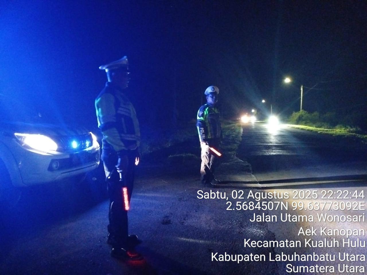 Guna menciptakan situasi kamtibmas yang aman dan kondusif, personel Polsek Kualuh Hulu Polres Labuhanbatu melaksanakan kegiatan Blue Light Patrol pada Sabtu malam, 2 Agustus 2025. Kegiatan ini dilaksanakan mulai pukul 22.00 WIB hingga selesai, dengan fokus jalan umum Perkebunan Kenopan Ulu tepatnya di sekitar Gardu PLN, Kecamatan Kualuh Hulu, Kabupaten Labuhanbatu Utara.